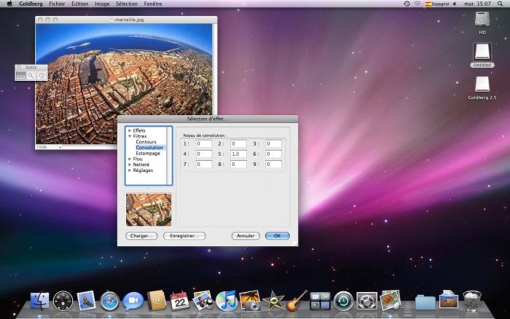 Goldberg X se présente comme une application intégrée à l'environnement Mac pour visionner et retoucher des images. Ce programme permet d'ouvrir des photos et d'y appliquer une quinzaine d'effets.